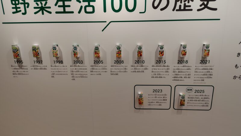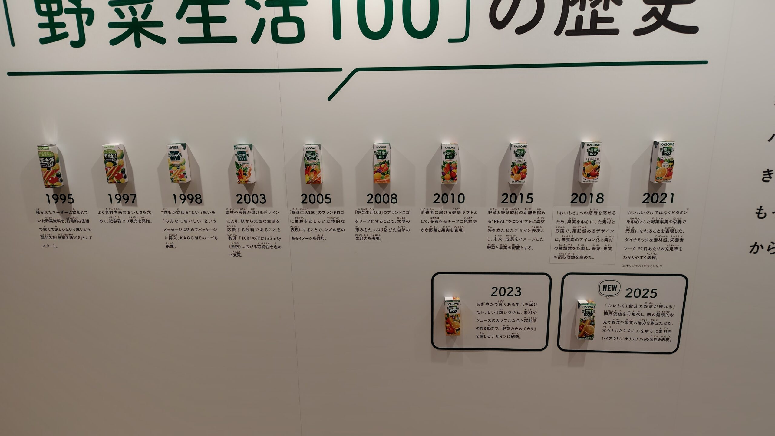 形式上、講義と見学で担当のお姉さんが別だったんだけど、講義の方はポップな雰囲気にするためかザ・テーマパークのお姉さんテンプレ的な感じだったのでこのノリが続くとしんどいなぁと思っていたんだけど、見学の方のお姉さんは独自のユーモアも交えた感じでそっちの方が面白かった。歴代のご当地系の期間限定野菜生活がズラっと並んだ一覧でこれが好きだったんだけど消えてしまったとか、これとか見た事ないので売れなかったんでしょうとかユーモアで言えちゃう人は好きだ。