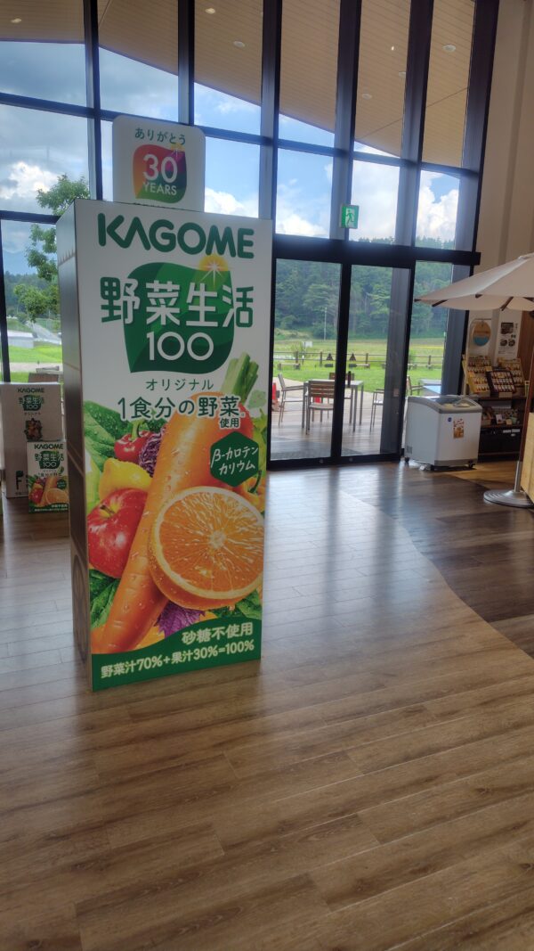 そして「カゴメ野菜生活ファーム富士見」へ。工場見学もできるところで、座って歴史やカゴメのやり方などを聞くいわゆる講義的なのを聞いてからバスに乗ってその少し先にある工場に向かい見学コースを巡る事が出来る小一時間程度の内容となっていた。度を越えたトマト嫌いの父が謎に予約取って行きたいと言っていた場所で、試飲でトマトジュース出てきたらどうするんだと思っていたが、この日の試飲はトマト入ってないノーマルの野菜生活だったのでセーフだった(野菜ジュースとか野菜一日これ一本だったらアウトだった。100%トマトジュースだとさすがに自分も苦手…)。