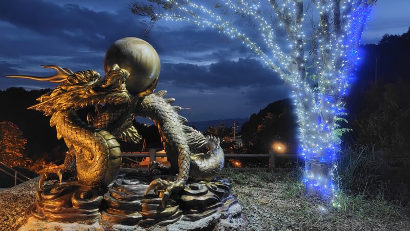 写真を撮ると幸せになるという謎の龍がやけに神々しく写った。