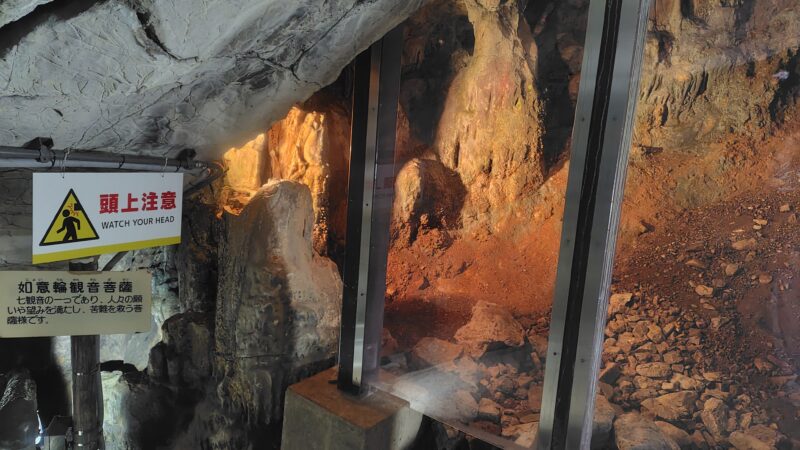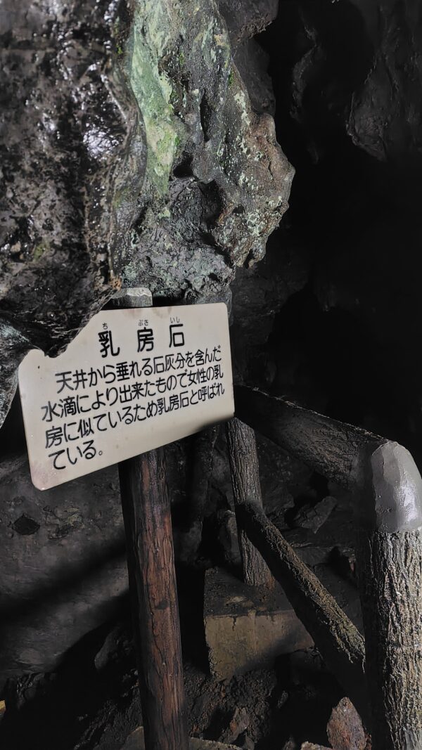 とはいえ入口コレなのでまあなかなか…。実際には中は狭い低い滑るところはあるんだけど、照明全開で明るく、蝙蝠が飛び交う事もないので割と普通。